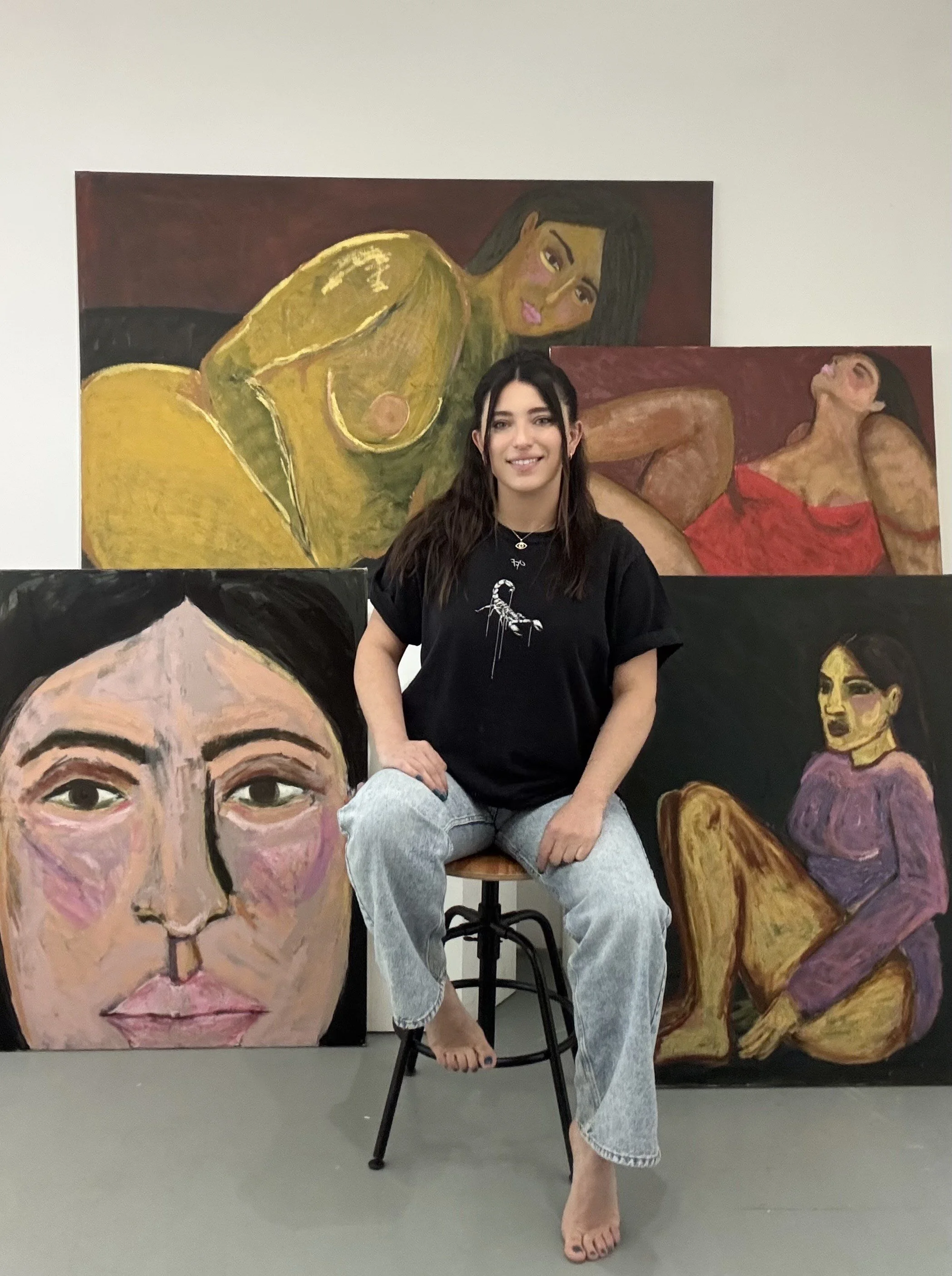Laura is a mixed media artist whose work speaks in layers—oil, print, and texture. Guided by the female gaze, she paints womanhood not as a spectacle, but as truth: complex, sacred, unguarded. Inspired by the strength, the beauty, its expectations and vulnerability of what it is to be a woman, Laura’s work invites reflection, and reckoning. In her hands, art is not just seen—it is felt.